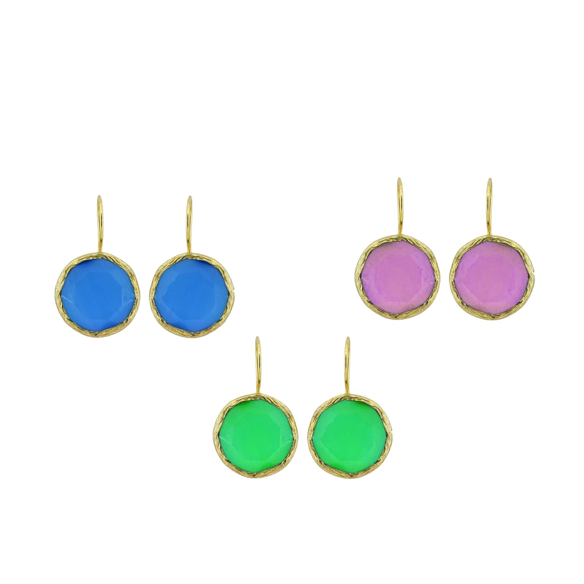 Aretes redondos chapados en oro de 22 quilates con forma de ojo de gato y piedra solar: pulidos y lujosos