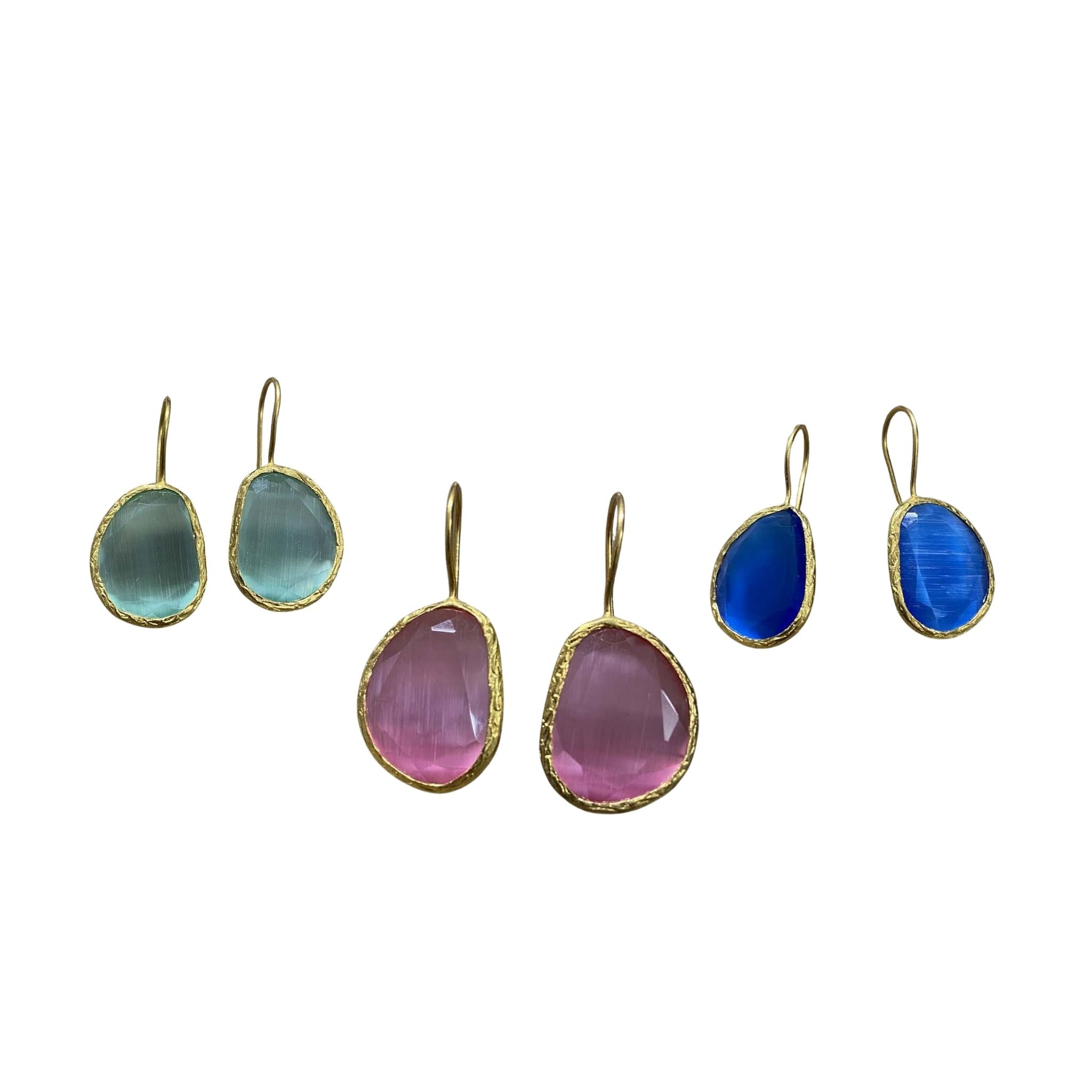 Pendientes de ojo de gato de piedra solar africana – Hechos a mano y elegantes- Oro de 22 quilates