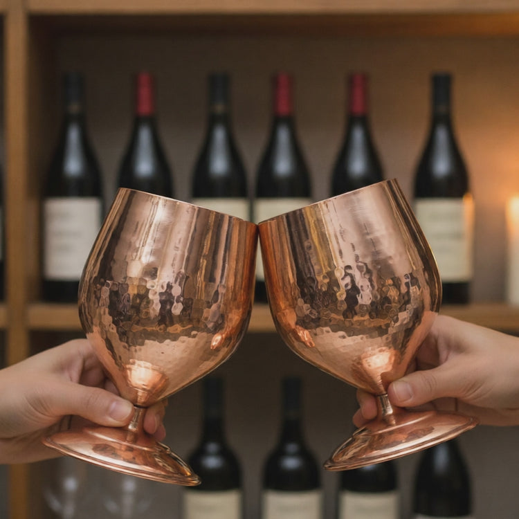 L'esterno lucido riduce al minimo l'ossidazione, mentre l'interno è accuratamente stagnato a mano per garantire un uso sicuro, igienico e duraturo. Ogni segno visibile del martello riflette la maestria unica dell'artigiano, conferendo a ogni bicchiere il suo carattere. Durevole, resistente alla ruggine e completamente realizzato a mano, questo bicchiere da vino in rame unisce tradizione e funzionalità raffinata sia per il divertimento quotidiano che per le occasioni speciali.