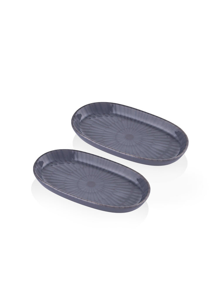 The Mia Noon Oval Serving Set of 2 Gray 17 cm - Elegant and Modern Ceramic Serving Plates