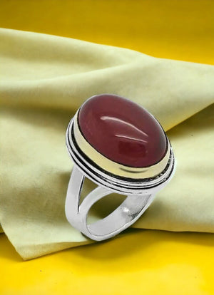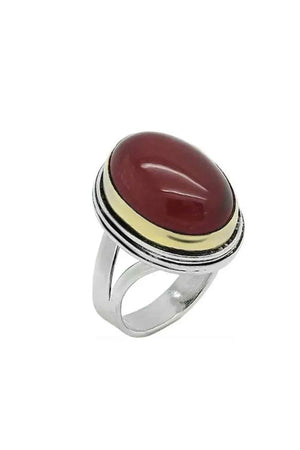 Beyisa Sarma Series Silver Ring with Agate Stone, Adjustable, 925 Sterling Silver