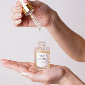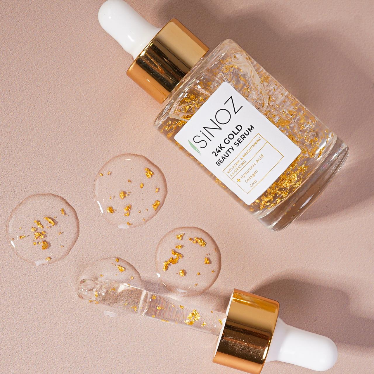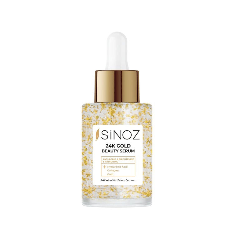 Sinoz 24K Gold Beauty Serum is a luxury anti-aging treatment enriched with real 24K gold particles to promote a radiant, youthful glow. Powered by collagen and hyaluronic acid, this fast-absorbing serum deeply hydrates, smooths fine lines, and supports firmer, more elastic skin — all without heaviness or residue.