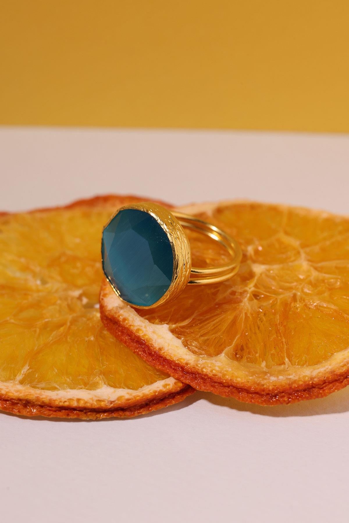 Beyisa Sun Stone Round Cut Blue Cat's Eye Triple Set 22K Gold