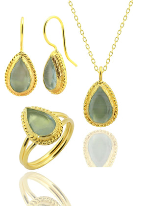 Beyisa Sun Stone Series Winding Drop Cut Blue Color Women's Triple Set 22K Gold Plated